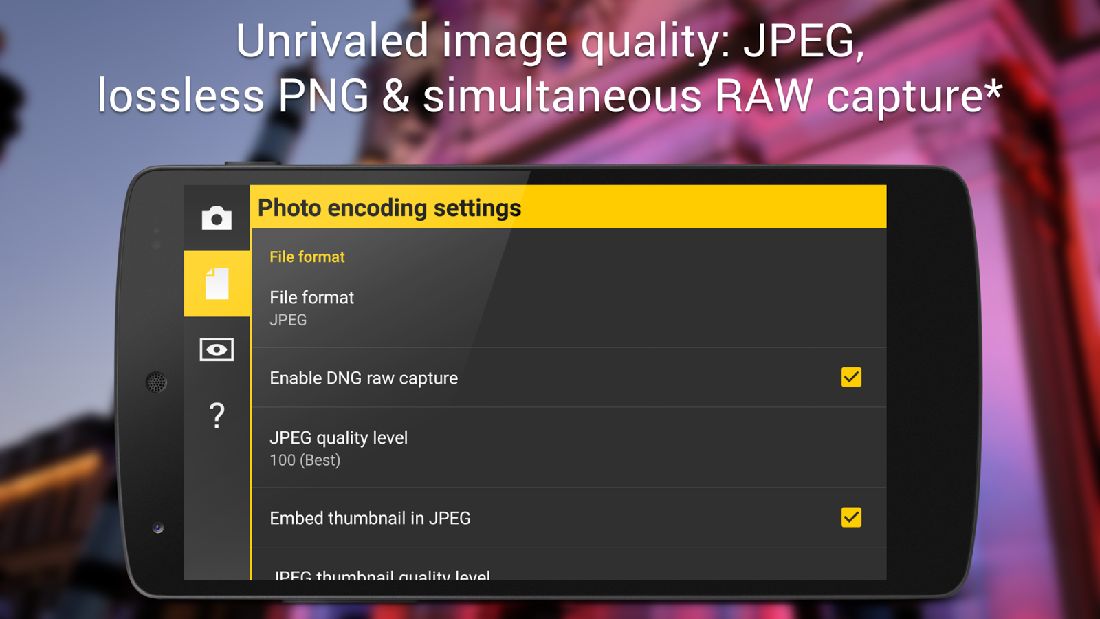 – Fixed: issues with some devices using Android 6.0 and RAW capture. Specifically, now the Nexus 5X and 6P devices work fine when using RAW capture.