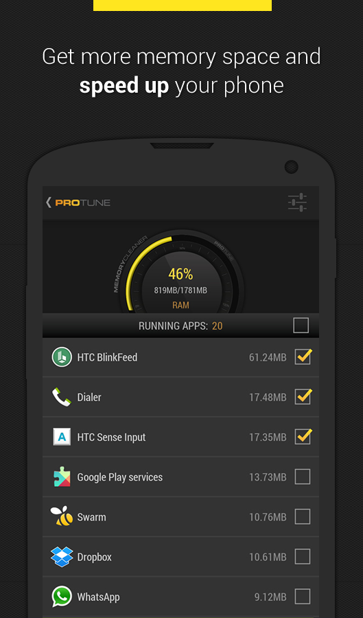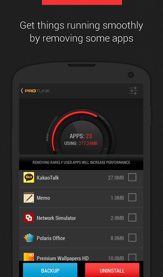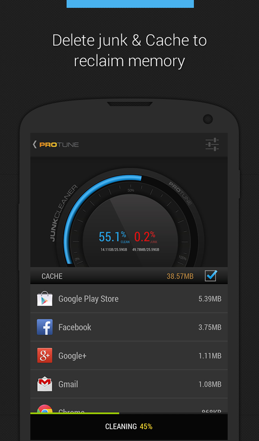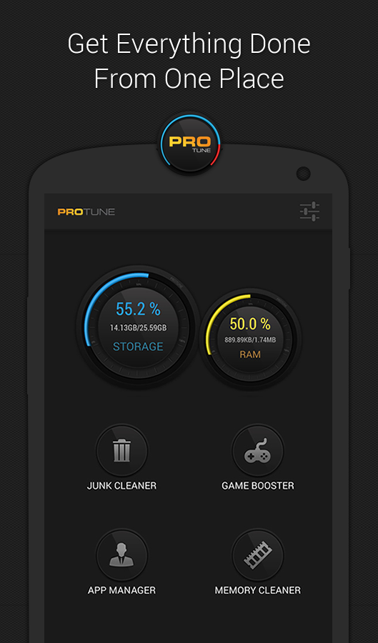 Easy to use and simple, PROtune is android optimization app that will tune up your device by deleting junk from your phone, cleaning memory, boosting your games and by easy deleting and managing apps.